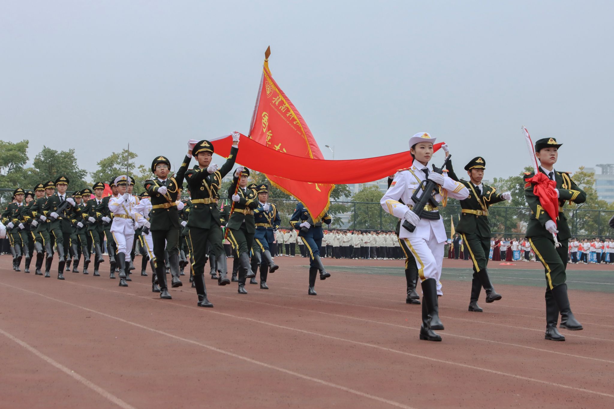 随着《运动员进行曲》奏响,国旗护卫队、管乐队、彩旗队、裁判员队、各学院方阵队及机关代表队迈着整齐划一的步伐入场。运动会入场仪式结束后,举行庄严的升旗仪式,全体师生肃立,面向冉冉升起的五星红旗行注目礼,奏唱国歌。