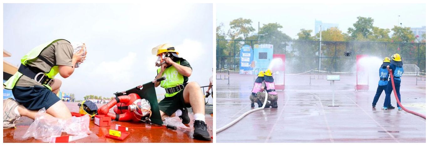 消防运动会上设置消防战斗服快速着装、水带连接接力、60米灭火器灭火等竞赛项目。来自赣州各学校的队伍同台竞技,在紧张激烈的比拼中熟练运用消防技能,展现高校学子的应急反应能力与协作精神。活动现场还设有消防器材展示区、模拟烟道逃生体验区,让师生近距离接触消防装备,在沉浸式体验中学习安全知识。