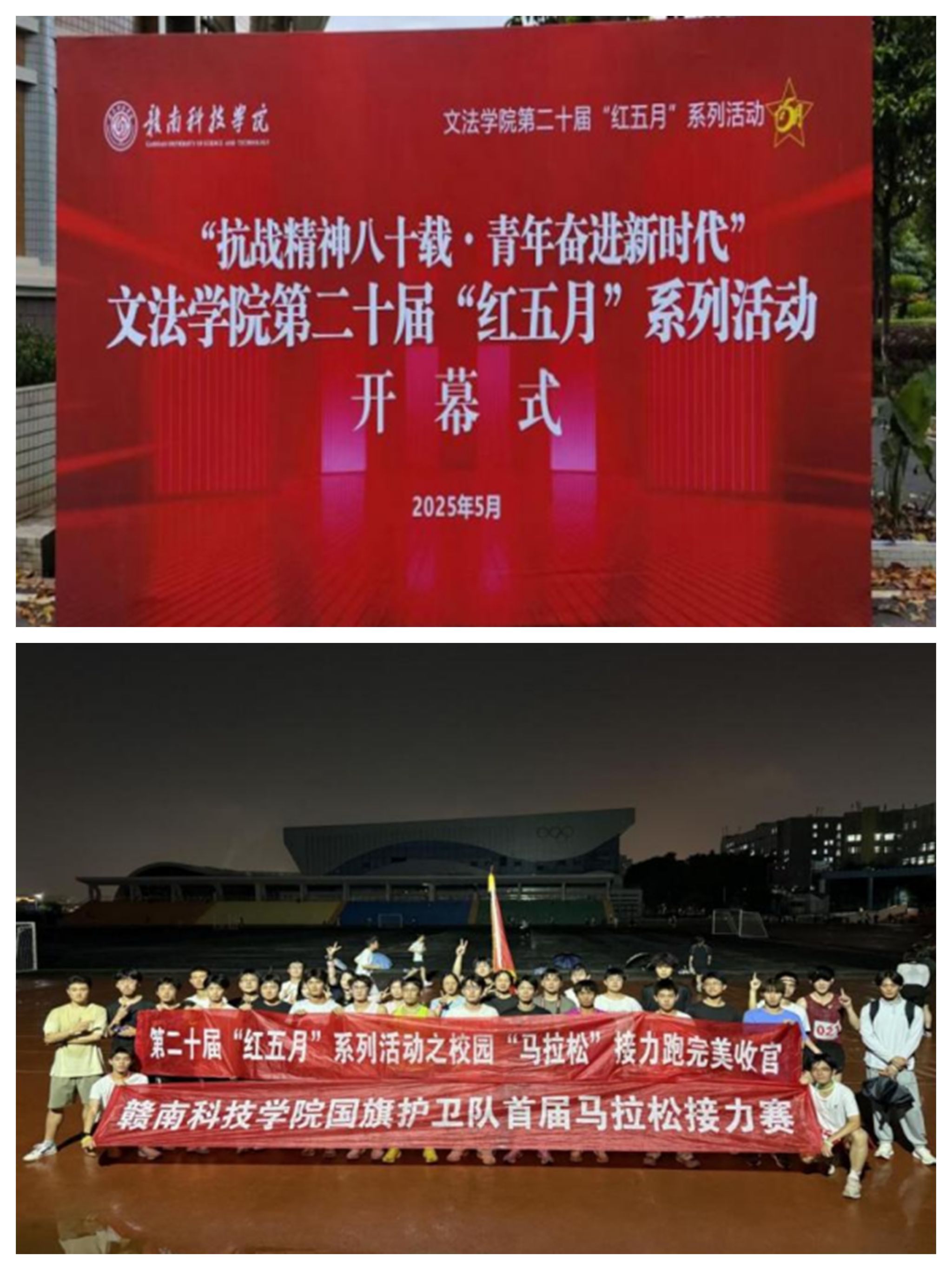 在第二十届“红五月”系列活动中,学院以“抗战精神八十载青年奋进新时代”为主题,开展了“抗战精神主题双学观摩”(听老党员讲故事)、“感恩母亲节”(写家书200余封)、“校园马拉松接力赛”(设6个站点讲解抗战史,300余人参与)等特色活动,引导学生传承红色精神。