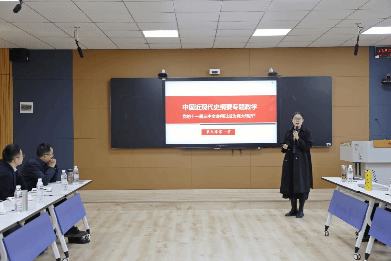 邱建丁强调,思想政治理论课是落实立德树人根本任务的关键课程。当前,我国正处于“百年未有之大变局”,思政课教师要深刻把握“培养什么人、怎样培养人、为谁培养人”这一根本问题,紧跟党的理论创新步伐,将党的二十届四中全会精神有机融入教育教学全过程,帮助学生准确把握时代发展大势,深入理解国家战略部署的内在逻辑。为全面提升思政课教师的教学能力与思政课课堂实效,他提出六点要求:一要筑牢理论根基,深刻领会党的二十届四中全会精神实质,推动全会精神与思政课教学体系深度融合,避免片面化、浅层化,确保融入实效;二要推动理论与实践有机融合,善用社会“大课堂”的鲜活素材,立足学生成长实践,优化教学案例,让党的创新理论真正入脑入心;三要强化教师队伍建设,优化教师专业技能,创新教学思路,在交流互鉴中提升教学能力;四要深刻认识意识形态工作的极端重要性,在课堂教学中坚持正确导向,引导学生明辨是非,自觉抵制错误思潮;五要注重提升课堂实效,以高质量教学引导学生将个人成长融入祖国发展大局,努力成为担当民族复兴大任的时代新人;六要深化教研相长理念,将党的创新理论融入科学研究,夯实理论基础,明确科研方向,开展有组织的科研,争做“经师”与“人师”相统一的大先生。