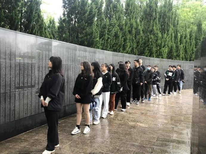 图为全体成员瞻仰烈士英名墙,一个个闪光的名字,书写着保家卫国的使命,革命先烈们的名字将被永远铭记。中国青年网通讯员 万志锋 供图