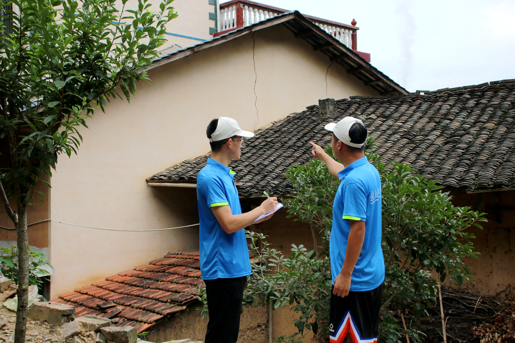 图为实践队队员为村民检查房屋安全情况,记录并告知所存在的安全隐患。中国青年网通讯员 陈心怡 摄