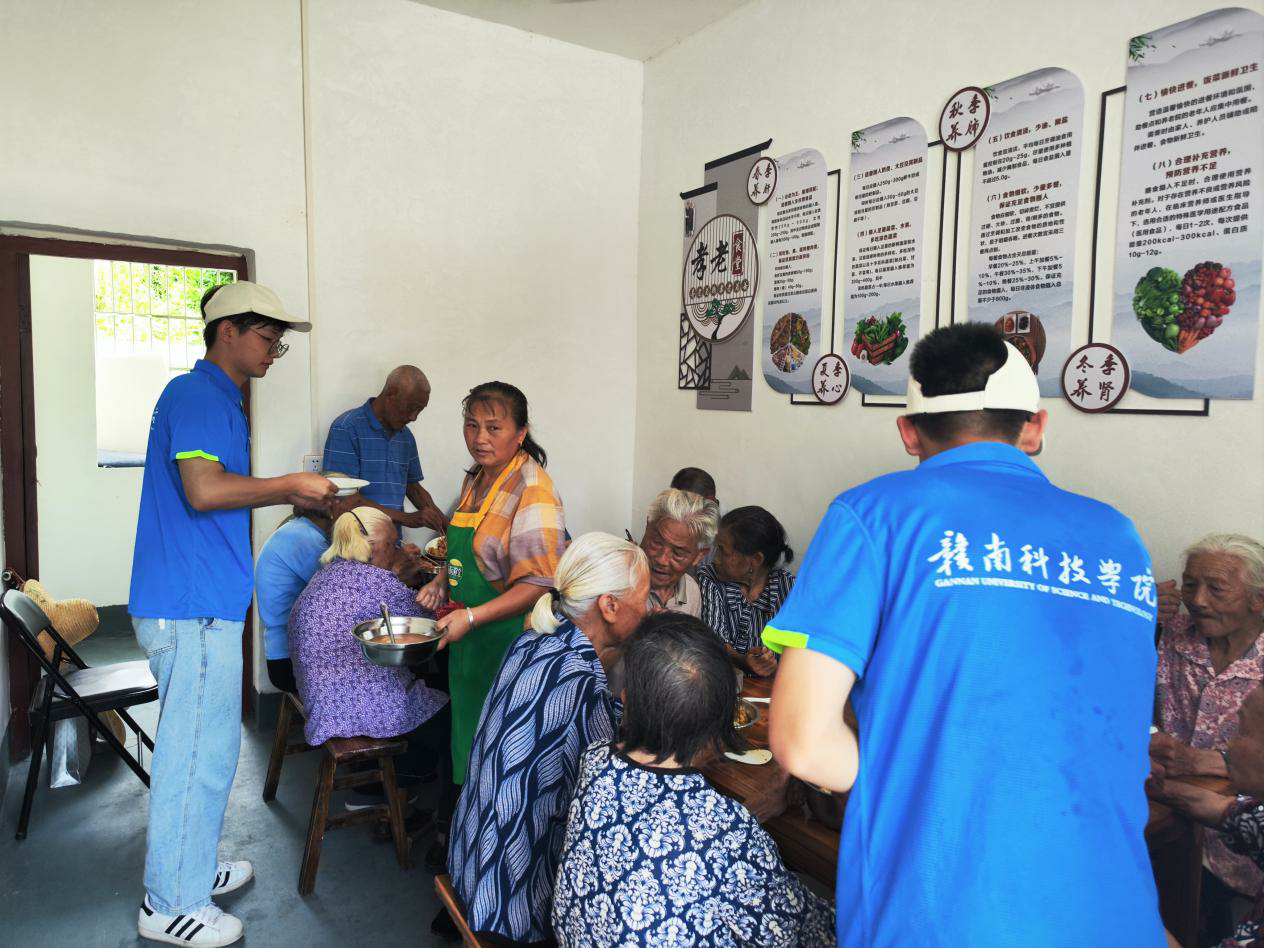 图片发自中青校园App图为实践队队员为老人们端菜。中国青年网通讯员 黄宇峰 摄