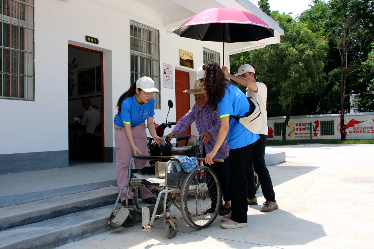 图片发自中青校园App图为实践队队员搀扶老人、为老人遮阳。中国青年网通讯员 黄宇峰 摄