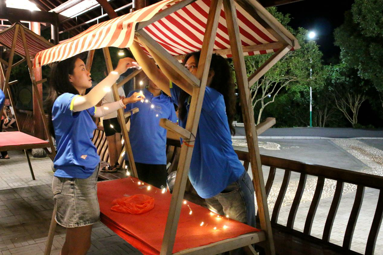 图片发自中青校园App图为实践队队员布置“童心港湾”现场。中国青年网通讯员 黄宇峰 摄