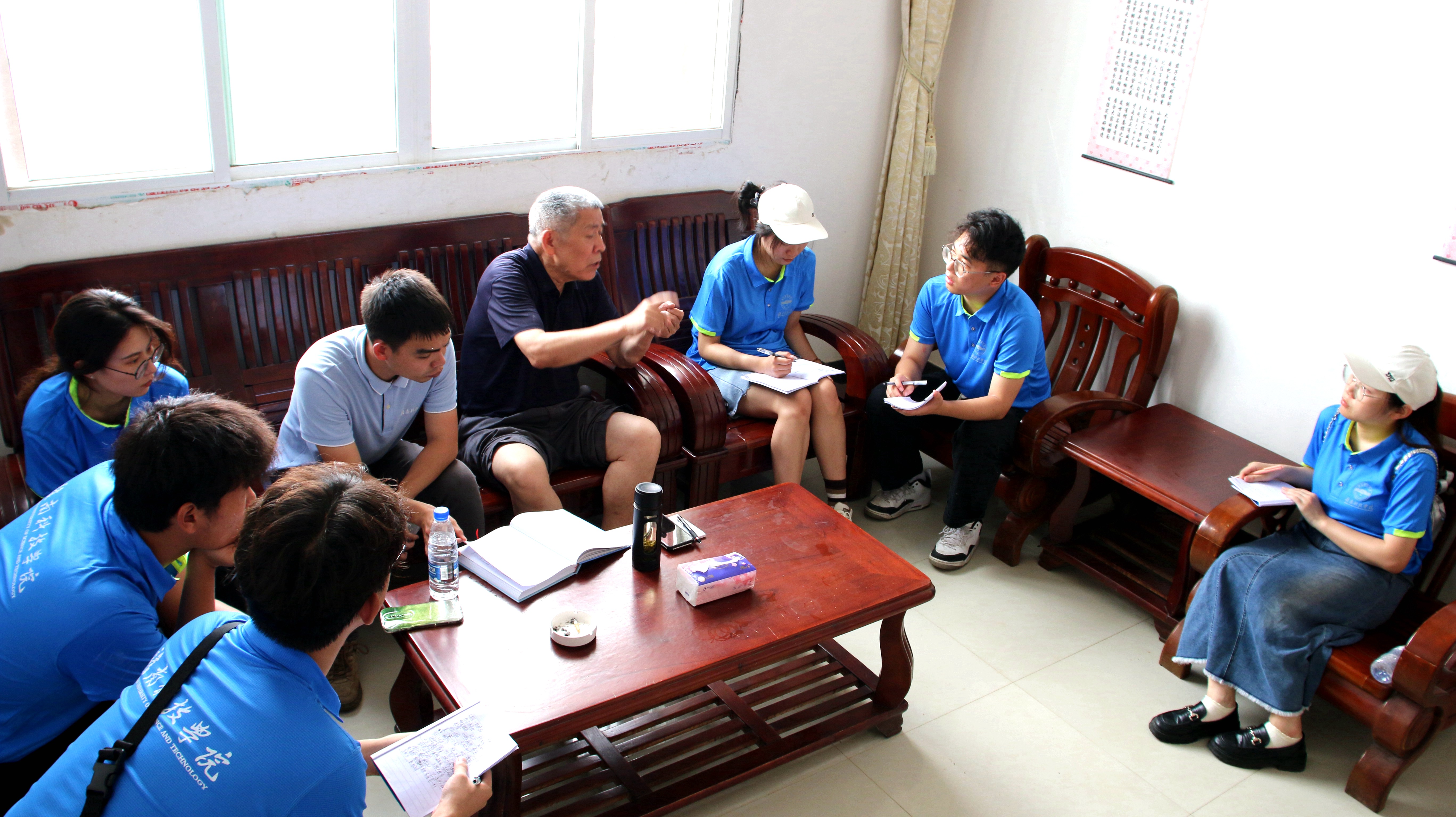 图为老书记与实践队队员们进行亲切交谈。中国青年网通讯员 黄宇峰 摄