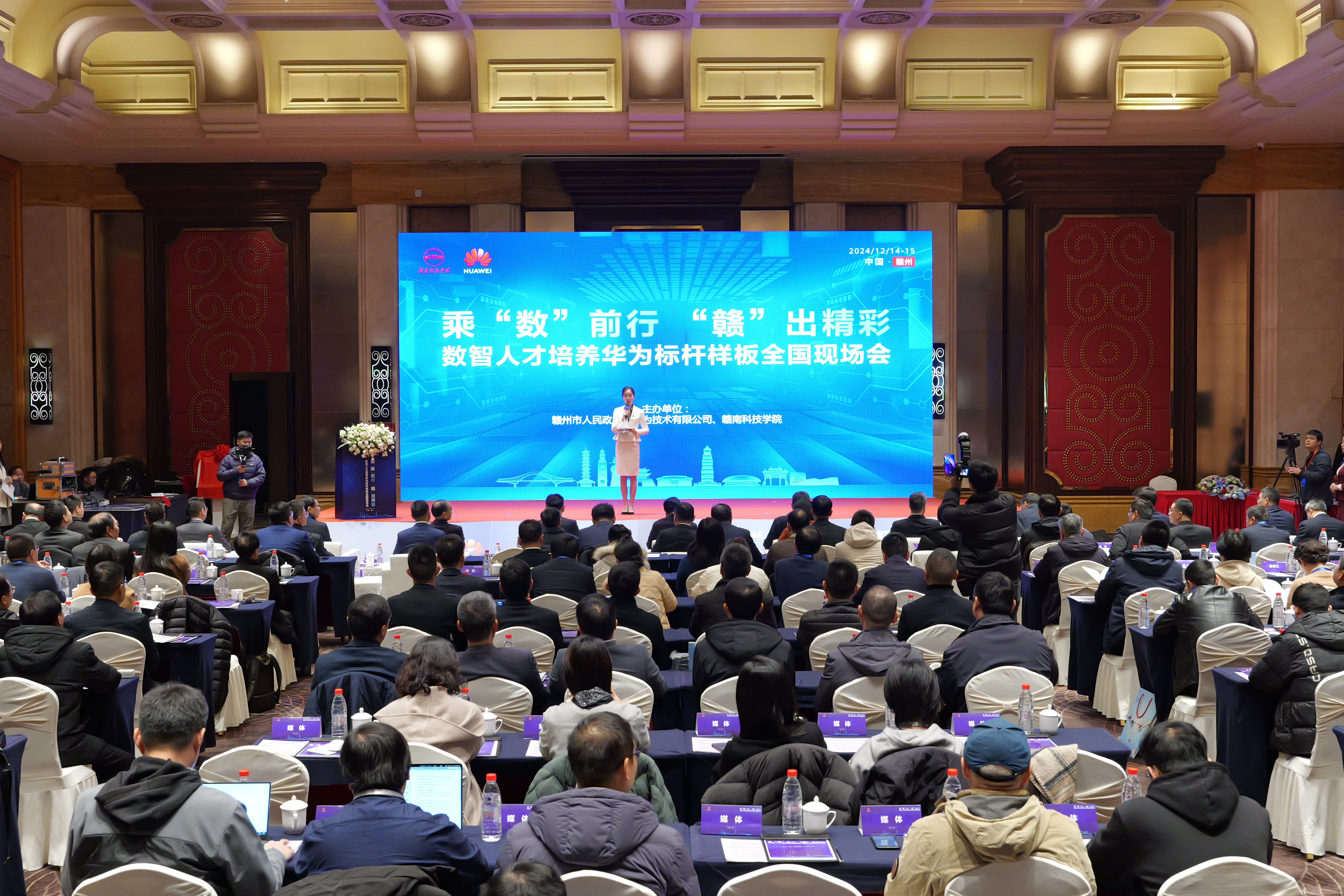 12月15日,由赣州市人民政府、华为技术有限公司、赣南科技学院联合主办的“乘‘数’前行 ‘赣’出精彩——数智人才培养华为标杆样板全国现场会”在赣州举行。这是赣南科技学院聚焦数智时代,探索打造政校企合作现代产业学院,加快培养高素质人才的缩影。