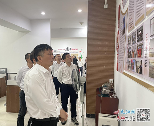 在杨军伟的陪同下,肖永鸿一行第一站来到定南县行政中心,参观定南县“无柜式、零距离”办税服务厅、“税联会企”服务专区、宁俊时劳模创新活动工作室,详细了解定南县税务局“党建+业务”的工作经验,探讨校政合作的空间。随后,肖永鸿一行来到定南县党建和人才服务中心,在工作人员的讲解下,深入理解入党誓词在不同时期所折射出的共产党员的无畏精神和坚定信仰。肖永鸿一行第三站来到定南县税务局党建文化展厅,在杨军伟的介绍下,系统学习定南县税务局党建工作的丰富经验,深入交流党建共建的方式方法。