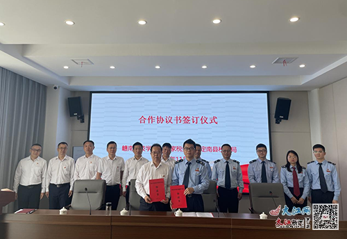 参观结束后,双方在会议室举行“学深悟透强党性,勇立潮头开新篇”主题党日活动暨“校政合作建设实践教学基地”签约仪式。校政代表在双方的见证下签订《校政合作建设实践教学基地协议书》。