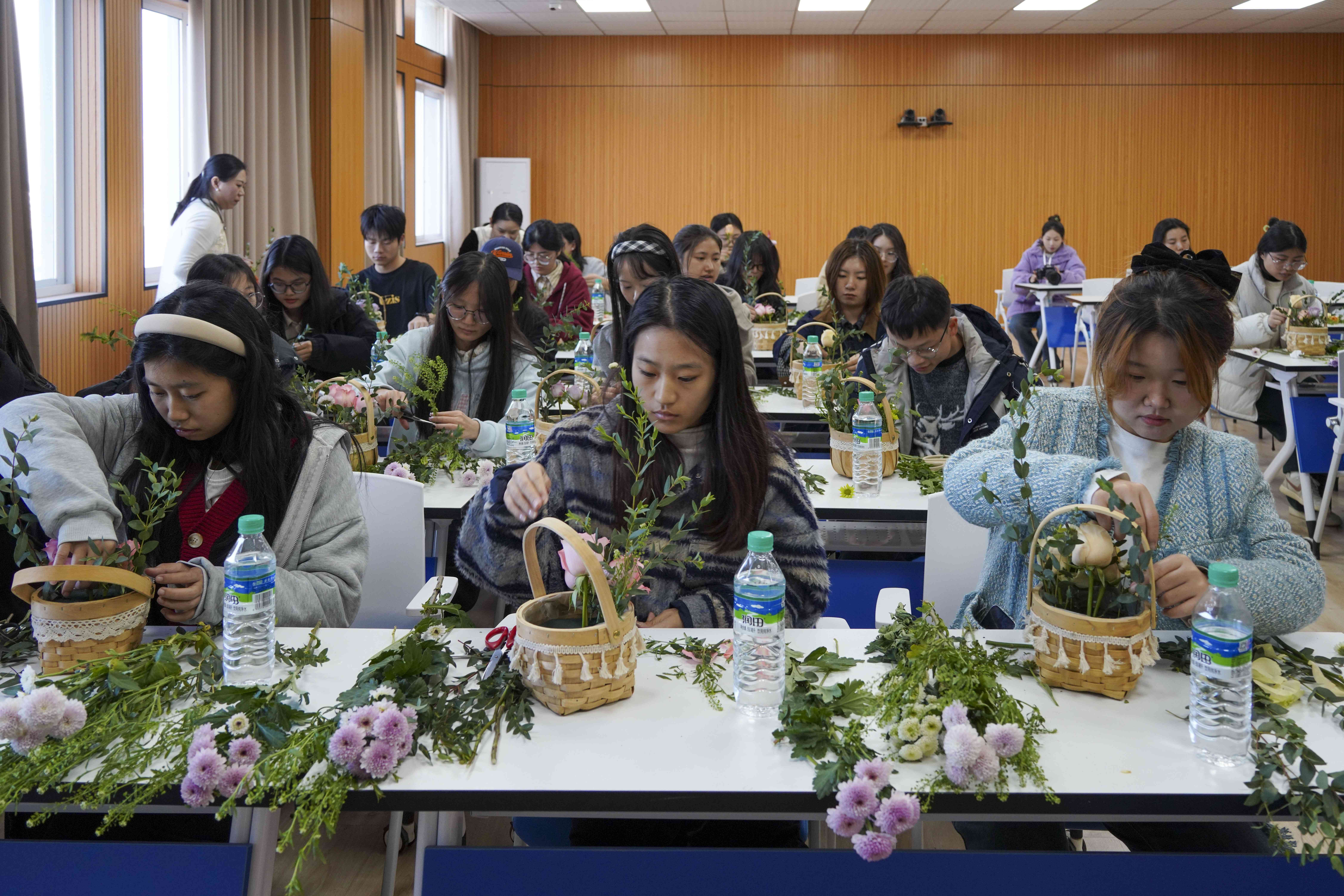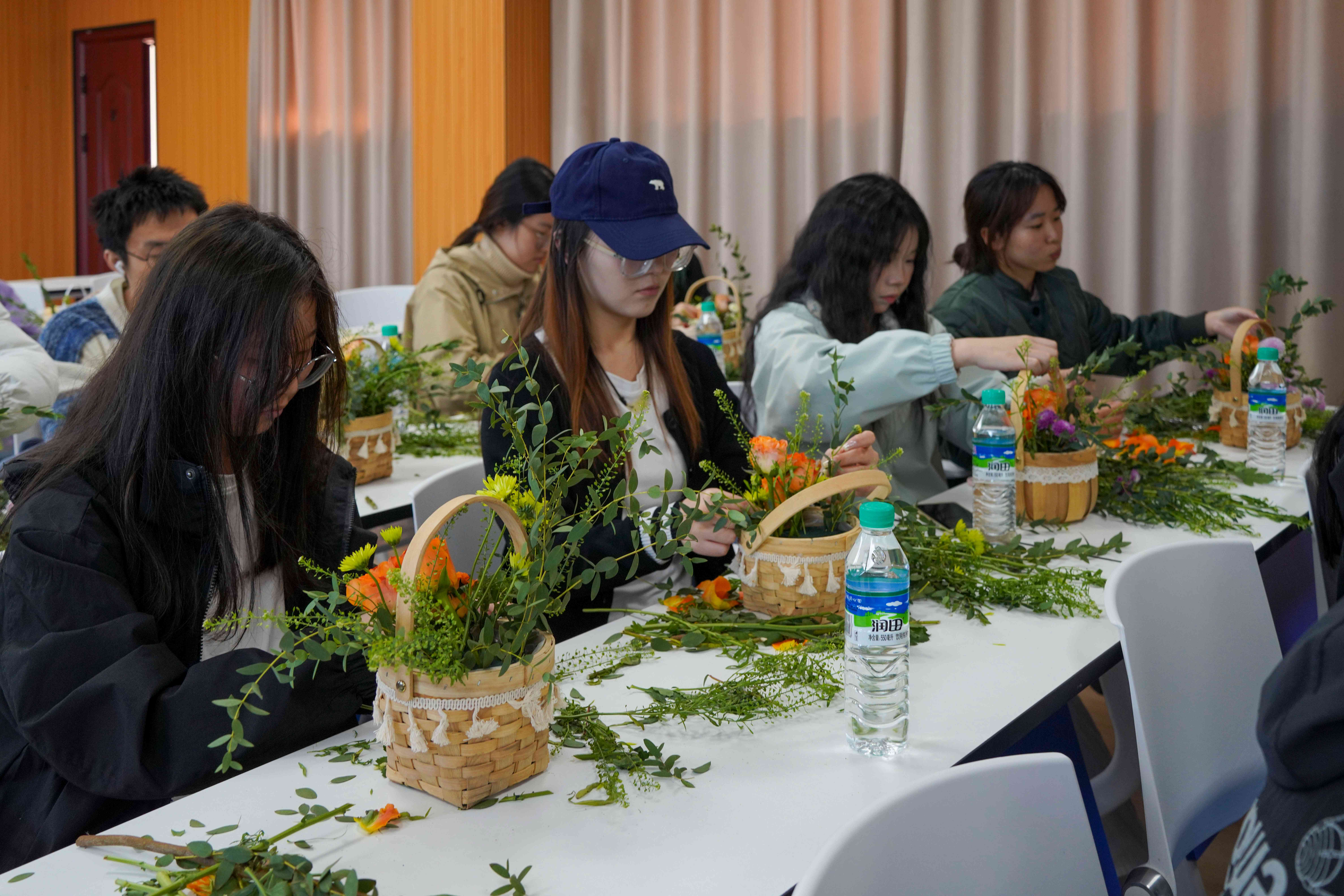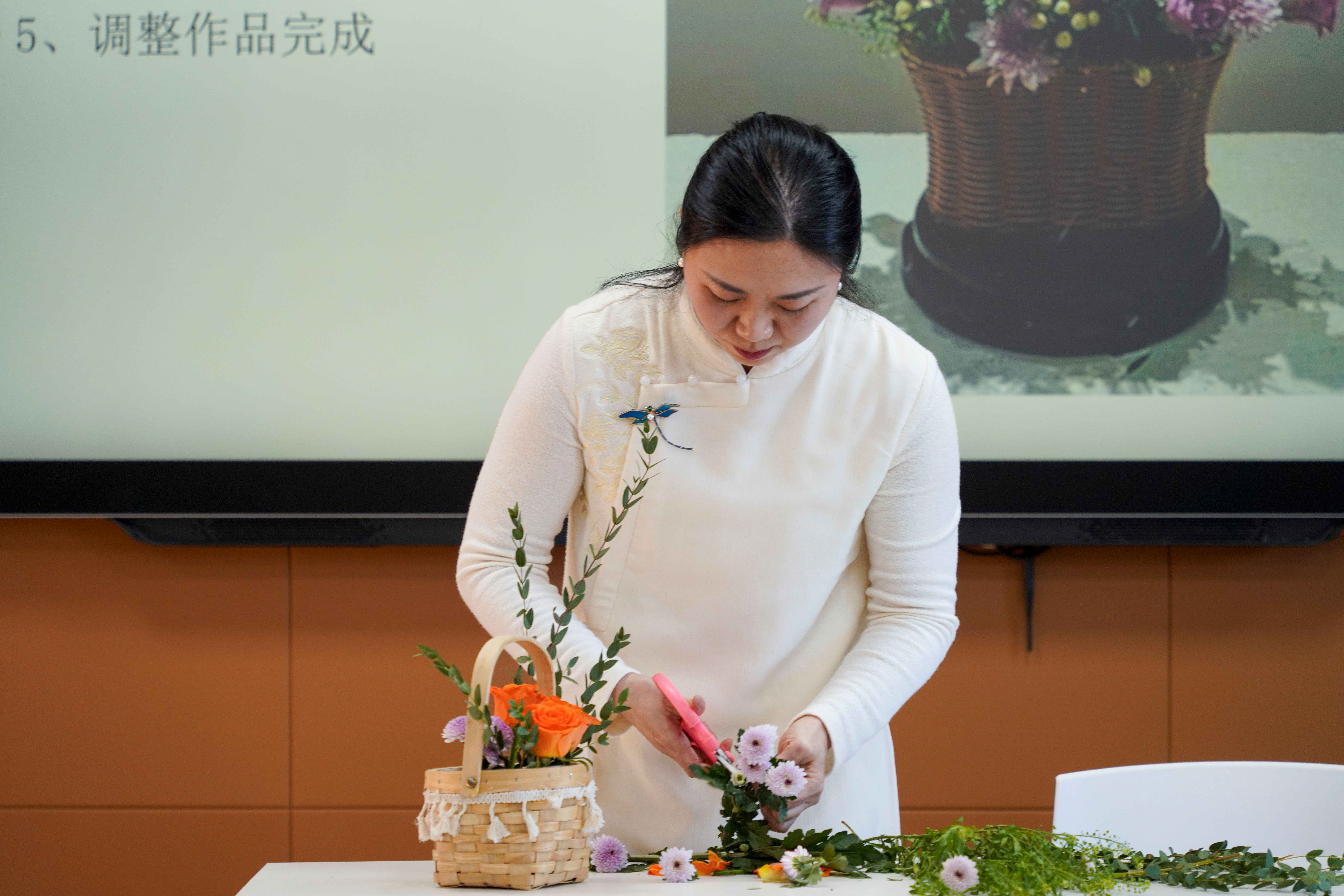 11月27日下午,赣南科技学院在崇善楼开展“劳动赣科”大学生实践成长计划宋韵插花活动。活动邀请赣南·赣州文明夜校老师、章贡区第七批宋韵插花艺术非遗传承人李华莹为热爱花艺的40余名师生授课。李老师从《知否,知否,应是绿肥红瘦》电视连续剧入题,系统地讲述插花艺术的历史变迁以及宋韵插花的理论知识,从花材选取、布局构图、巧用留白等方面,让参与者了解宋韵插花的独特魅力。随后李老师示范插花,带领同学们躬身入局、细嗅花香、体悟古韵,亲手创作属于自己的“小蓝花”。让同学们在实践中深刻理解劳动精神,提升实践能力、淬炼专注品质。(通讯员 王诗琪)
