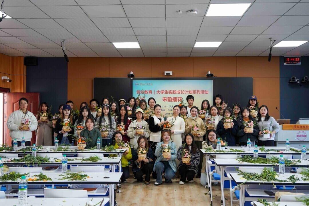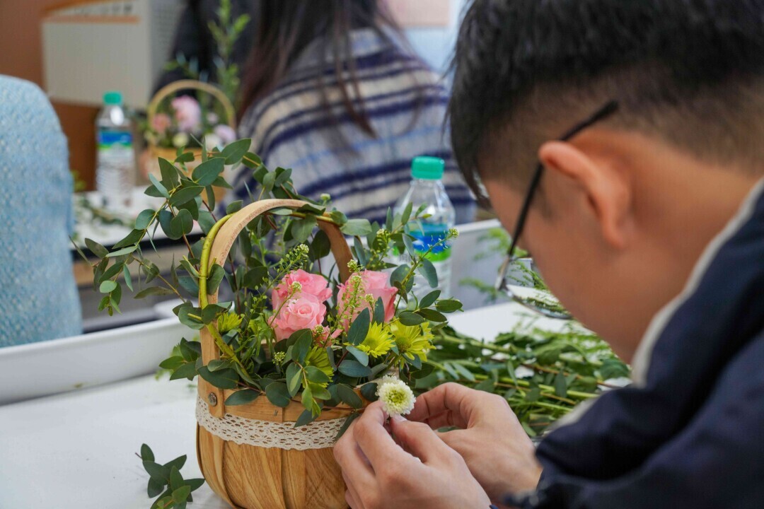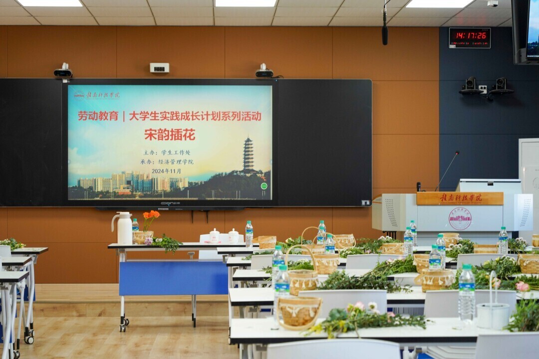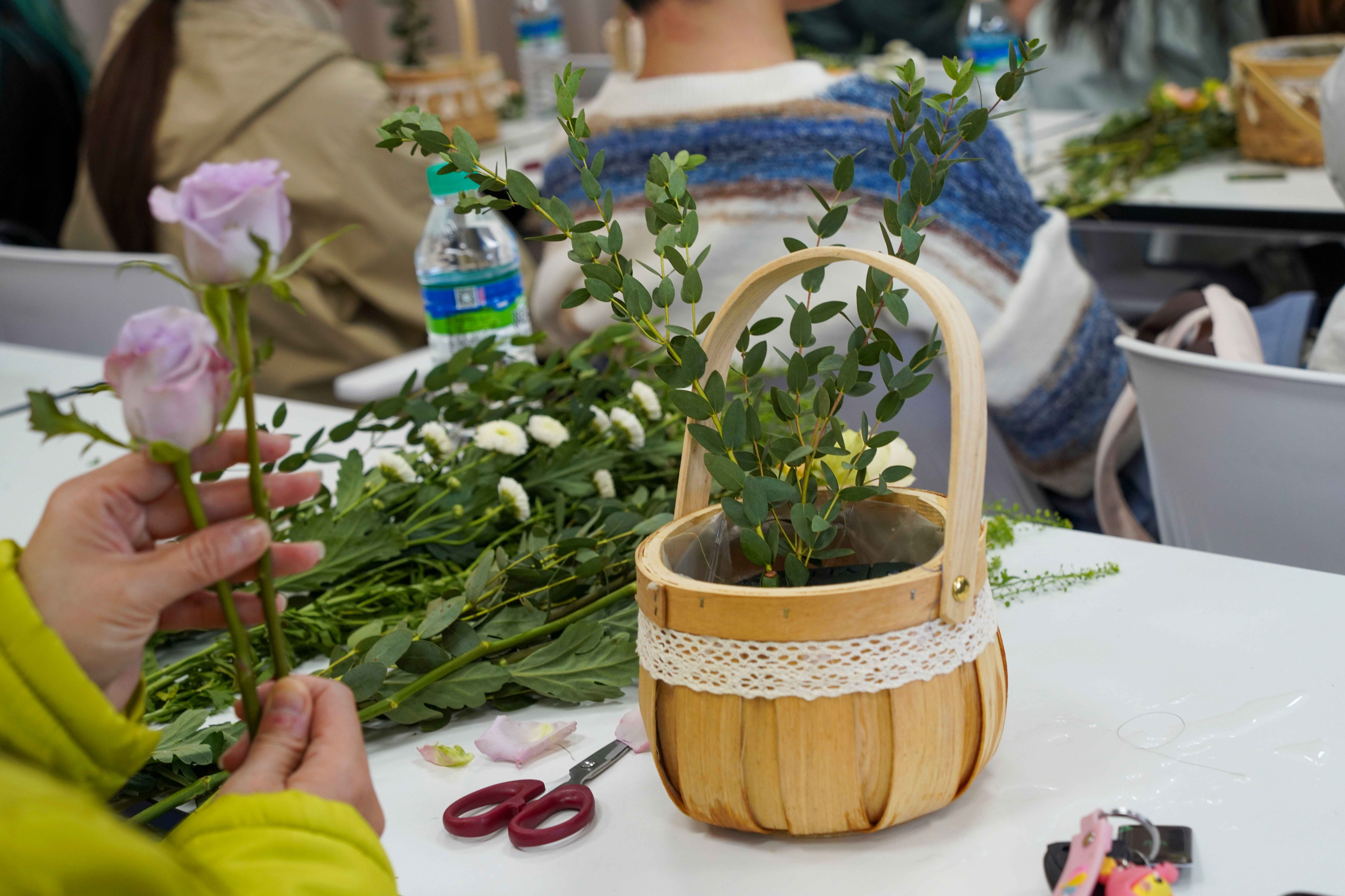 11月27日下午,赣南科技学院在崇善楼开展“劳动赣科”大学生实践成长计划宋韵插花活动。活动邀请赣南·赣州文明夜校老师、章贡区第七批宋韵插花艺术非遗传承人李华莹为热爱花艺的40余名师生授课。李老师从《知否,知否,应是绿肥红瘦》电视连续剧入题,系统地讲述插花艺术的历史变迁以及宋韵插花的理论知识,从花材选取、布局构图、巧用留白等方面,让参与者了解宋韵插花的独特魅力。随后李老师示范插花,带领同学们躬身入局、细嗅花香、体悟古韵,亲手创作属于自己的“小蓝花”。让同学们在实践中深刻理解劳动精神,提升实践能力、淬炼专注品质。(通讯员 王诗琪)