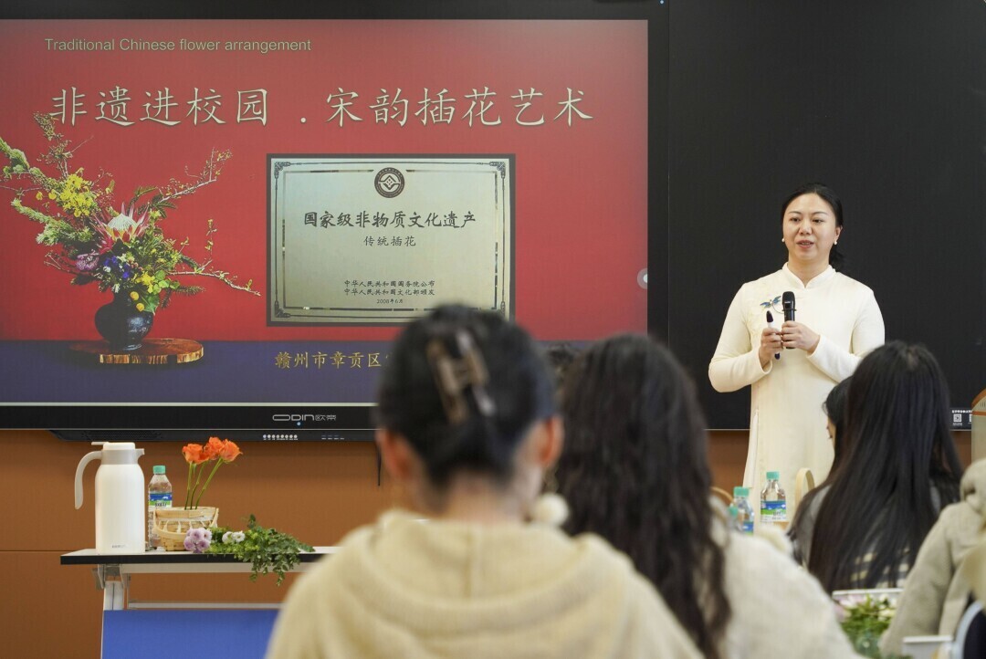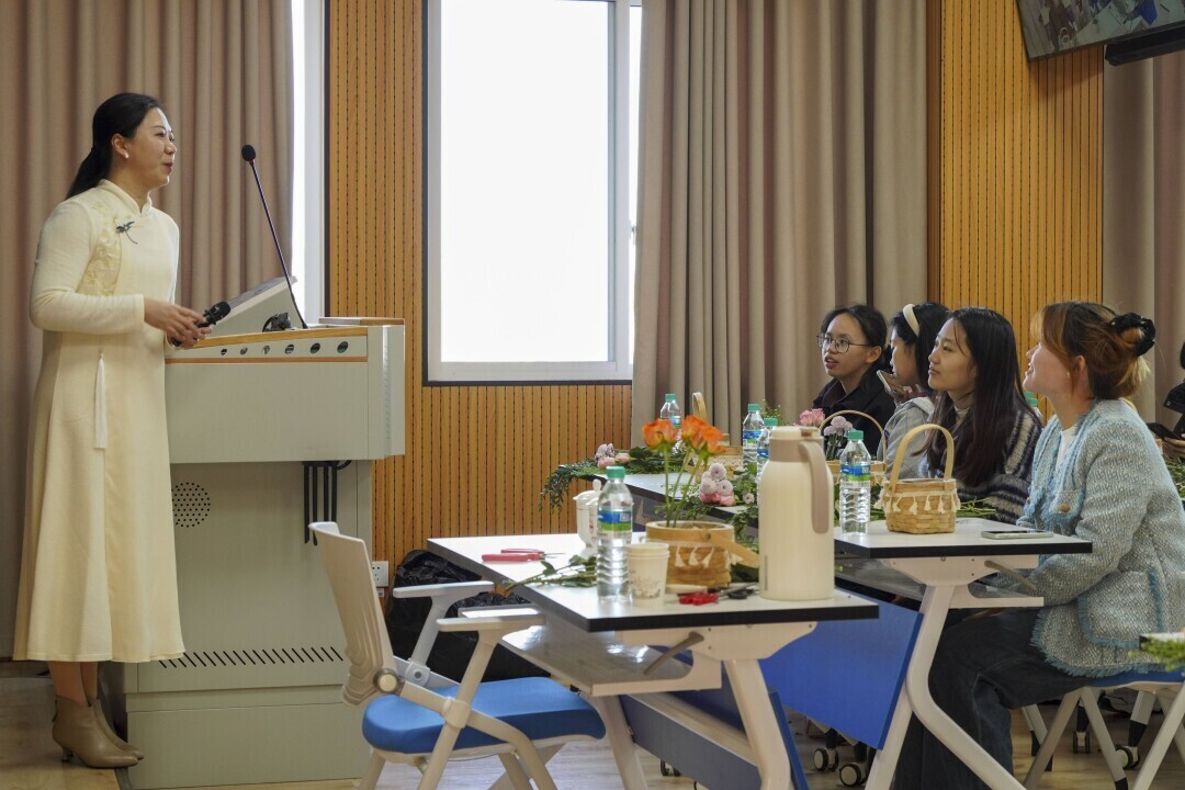 图为李华莹老师为同学们讲述宋韵插花传统演变。明淑娟 供图