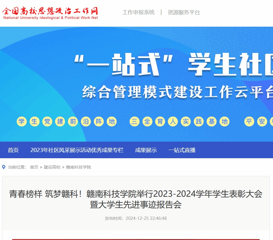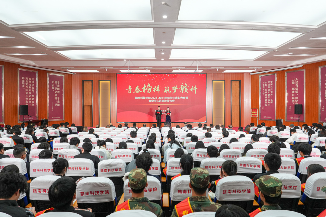 为贯彻落实全国、全省教育大会精神,凝聚新时代榜样力量,营造积极向上的育人氛围,激励广大学子踔厉奋发、勇毅前行,12月25日,“青春榜样 筑梦赣科”2023-2024学年学生表彰大会暨大学生先进事迹报告会在赣南科技学院图书馆学术报告厅举行。校领导邱建军、李国金、左群、陈文新、何锦龙,学校党委委员及各部门负责人,二级学院党委负责人,辅导员、学生代表共计300余人参加大会。