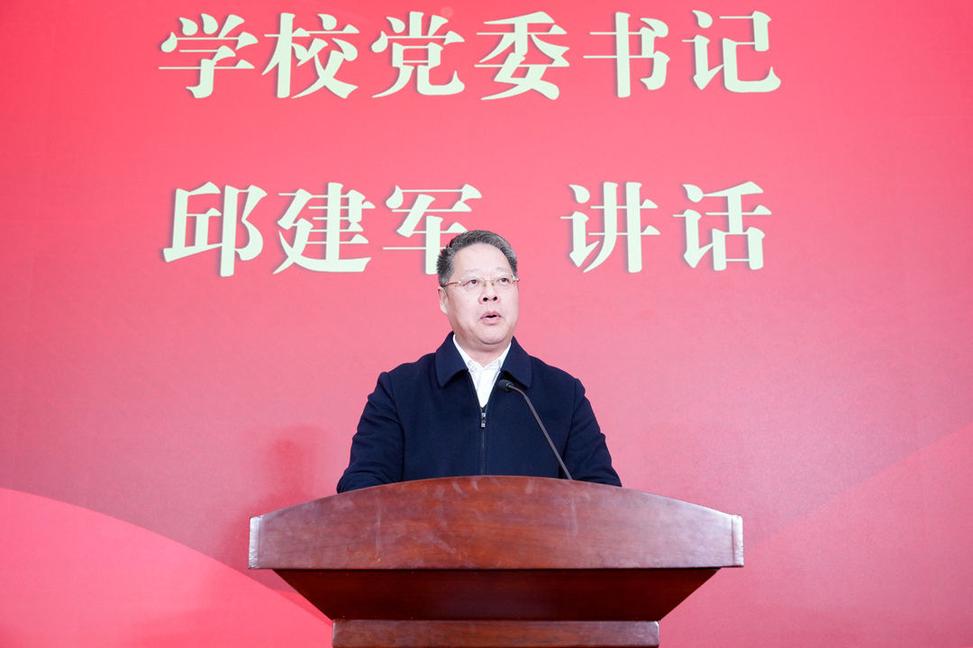 邱建军在表彰大会上讲话。他代表学校向受表彰的先进集体和先进个人表示热烈的祝贺,向广大教职员工表示衷心的感谢,并向同学们提出了三点希望和要求:一是要志存高远,怀德自重,肩负时代使命。把小我融入伟大祖国的大我,把自我融入民族复兴的伟业,在报效祖国的伟大实践中实现人生价值。二是要锤炼本领,磨炼技能,争做时代新人。不负青春,锤炼本领,用奋斗为青春加冕,争做时代新人。三是要学会思考,笃行致远,感受时代脉搏。多用脚步丈量祖国大地,用眼睛发现中国精神,用耳朵倾听人民呼声,用内心感应时代脉搏。
