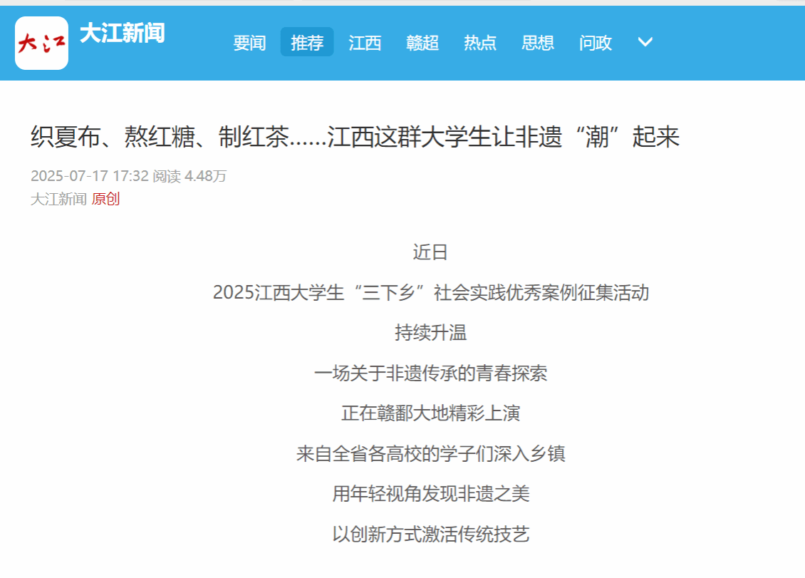 2025江西大学生“三下乡”社会实践优秀案例征集活动