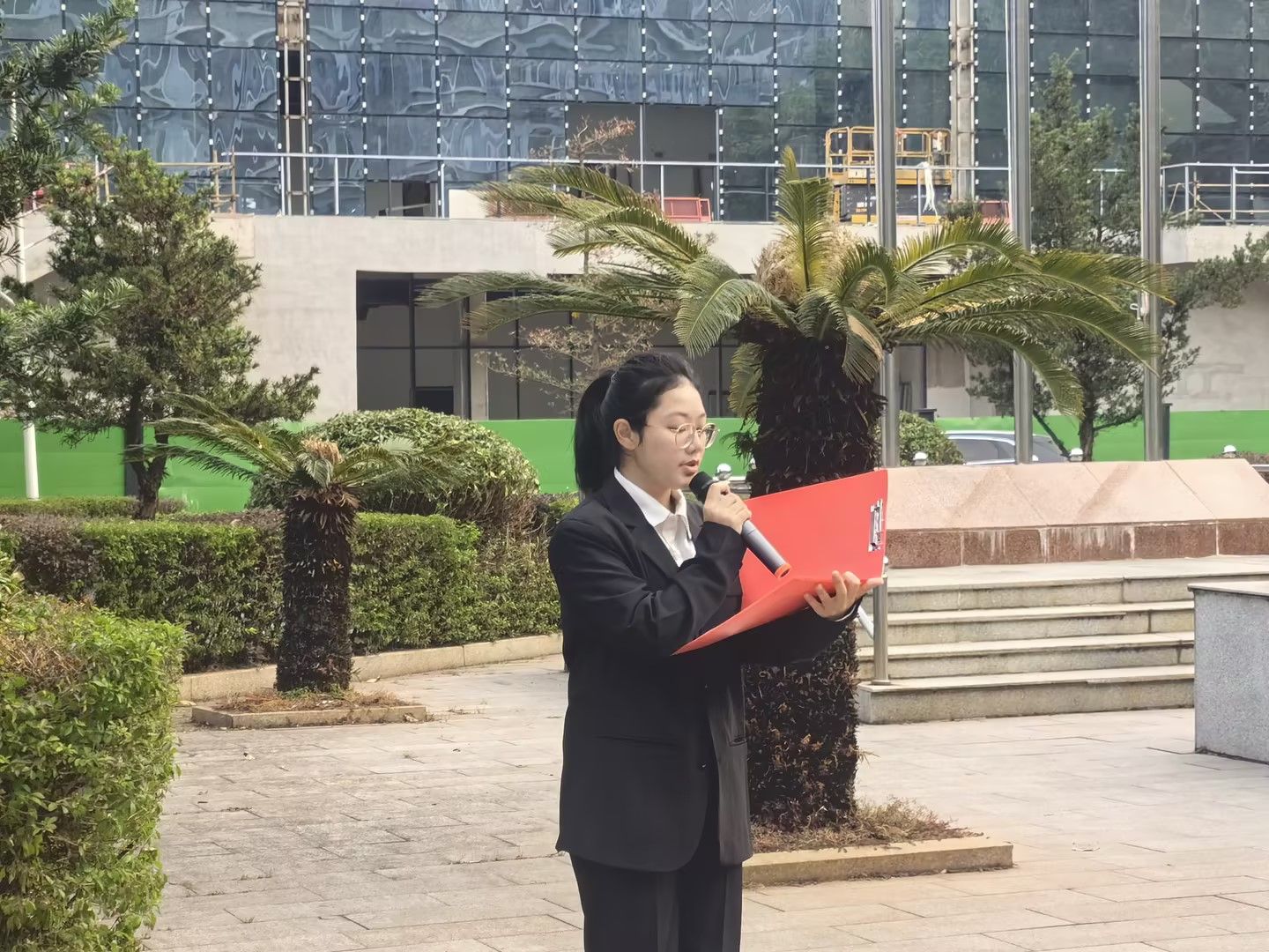 学生代表法学242班黄怡祺同学以《青春与责任》为主题在国旗下作演讲。她表示,要以青春之我,创造青春之中国。她呼吁同学们用青春和汗水,书写人生华章,为实现中华民族伟大复兴的中国梦贡献青春力量!