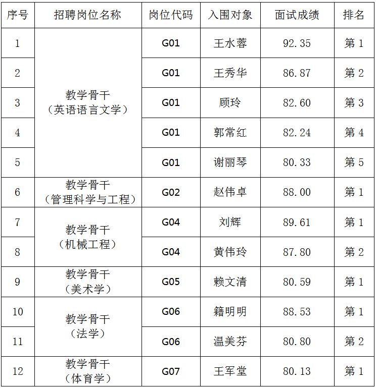 根据《赣南科技学院2022年急缺师资公开招聘公告》教学骨干岗的具体规定,经资格审查、考生确认、面试考核,依据个人综合成绩及排名,确定12人入闱我校2022年教学骨干岗公开招聘的体检、考察对象,现将名单及有关事项公告如下。